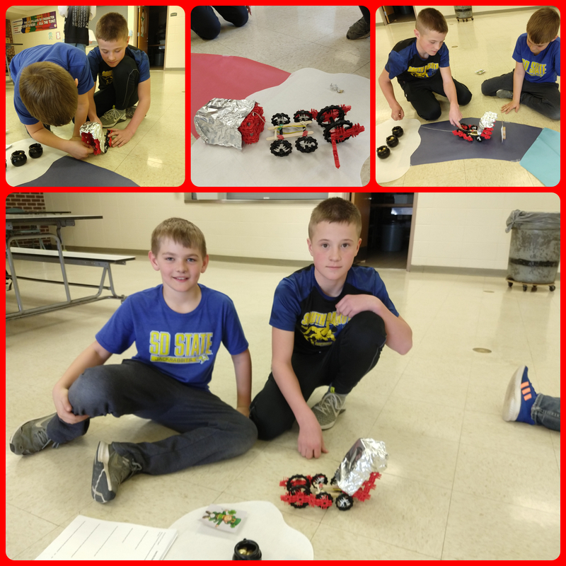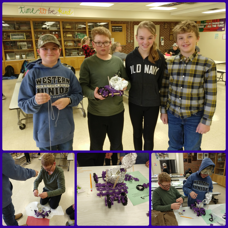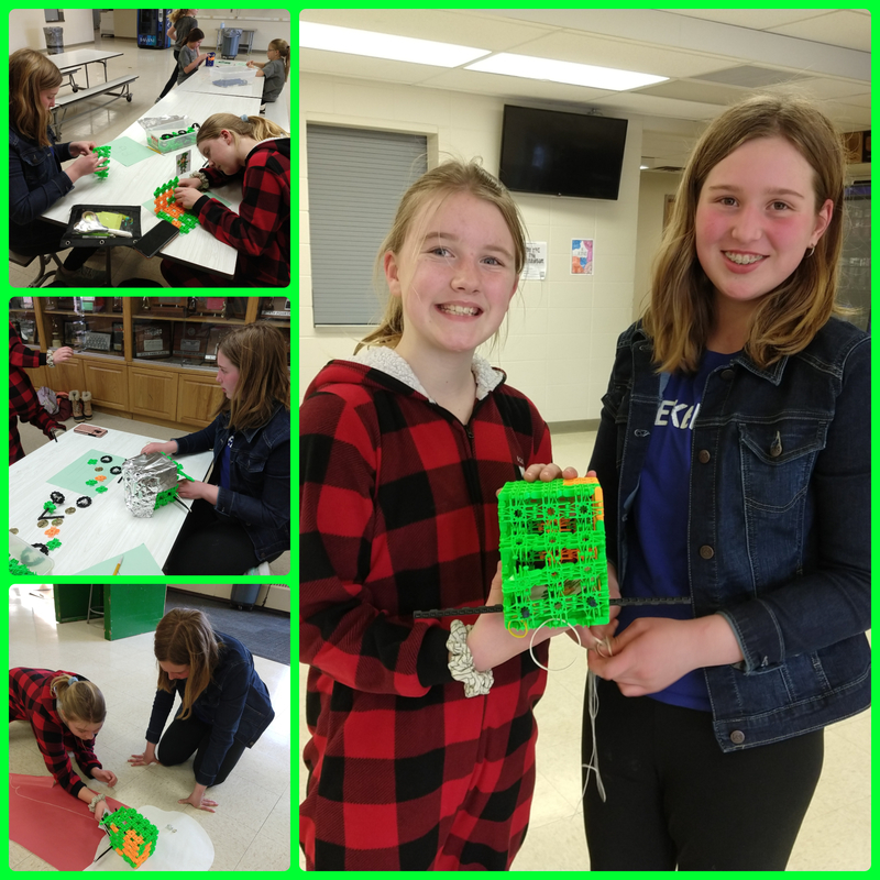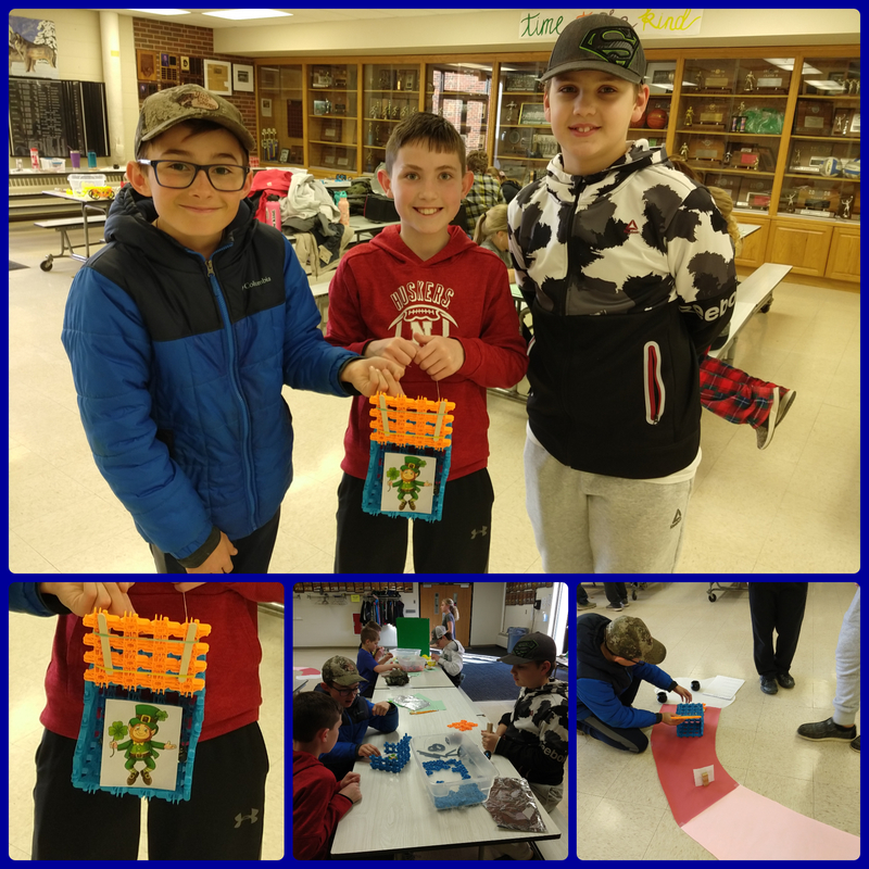 On Friday, 18 students participated in the "Save the Gold" STEAM activity in the cafeteria. This activity was available to any 5th or 6th grader. All of the students were successful in creating a leprechaun trap and saved the gold! See the pictures below for all the different designs that the students came up with: