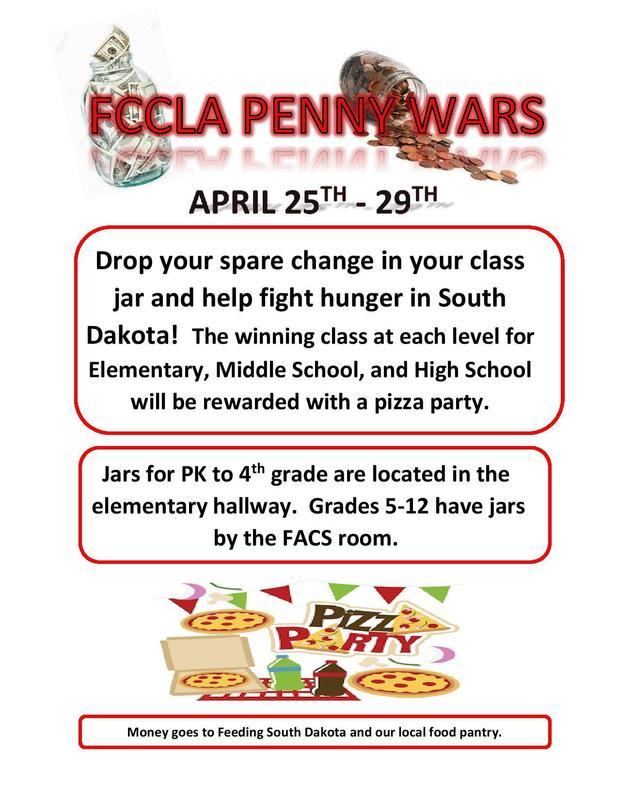 The Kimball FCCLA Chapter has declared April 25-29 as Penny War Week! See flyer for more info:
