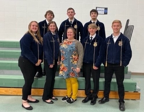 New Officers pictured above are: Taya Chelmo, President; Swayze Ness, Vice President; Braxton Pulse, Treasurer; Colton Michalek, Secretary; Jayden Kott, Sentinel; Shayda Ness, Reporter and Gavin Walsh, Student Advisor.