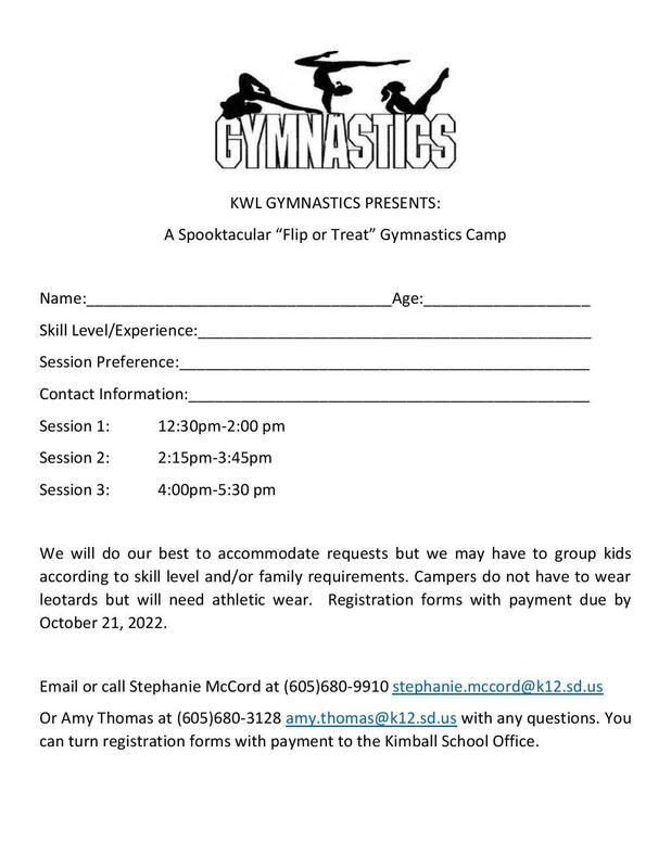 Gymnastics has been added as a sanctioned sport for the KWL Coop. Students participating will be required to fund their own monthly membership to the practice facility, uniforms and transportation to practices which are held in Mitchell. Stephanie McCord & Amy Thomas are the volunteer coaches. Due to these expenses, they are hosting this fundraiser for all PK-6th grade students in an effort to assist with the costs.