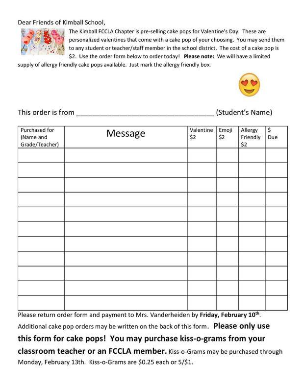 Surprise your child with a Kiss-O-Gram or Cake Pop for Valentine's Day! FCCLA is hosting this fundraiser to help support their programs and appreciate your contribution and participation.